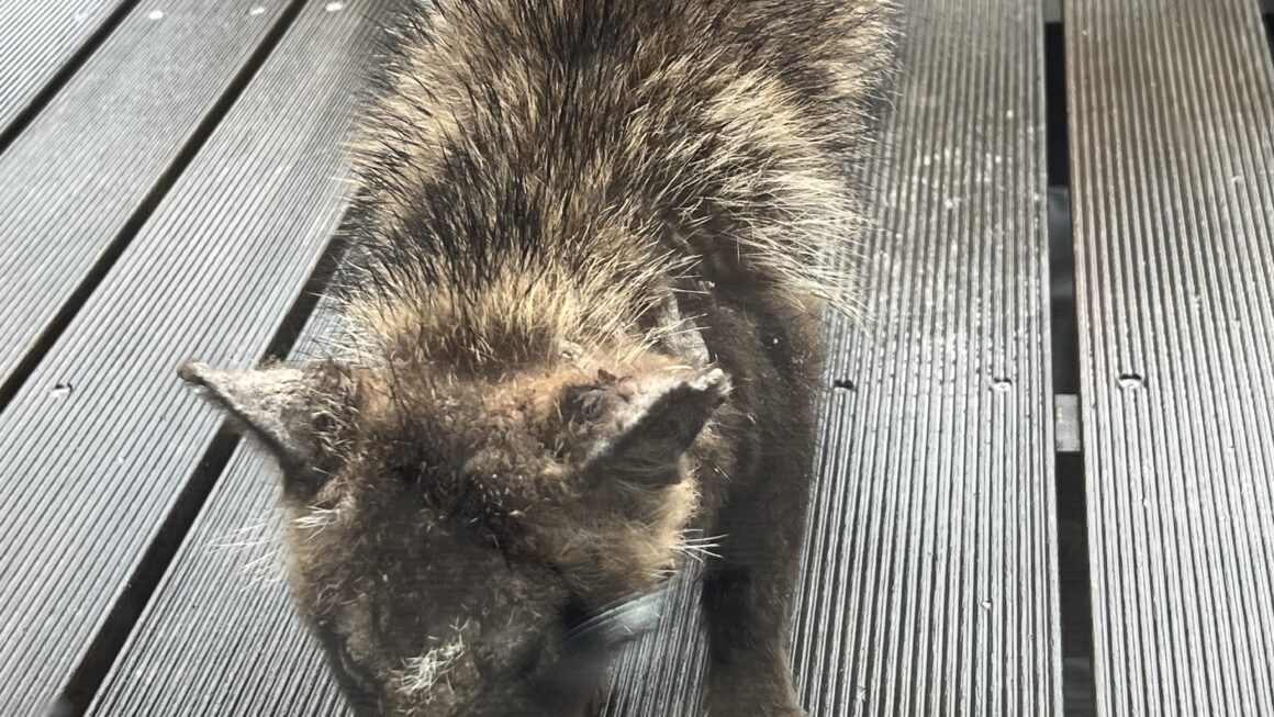 最近,変な動物が野良猫用の餌を食べにくる.アナグマと思ったが、アナグマからは,威嚇されている。写真を撮ってスマホで調べたら、タヌキに近い。皮膚病か何かで毛が抜けたタヌキのようだ。他のタヌキはよく家族で来るので、親から見捨てられた一匹狼ならぬ一匹狸のようだ。警戒心が強いがお腹が空いているので、周りを気にしながら餌を食べる。物凄く食べる。病気が移ると怖いので離れた所から観察している。私が長崎にいる間にしっかり栄養を摂って元気に成長してほしい。