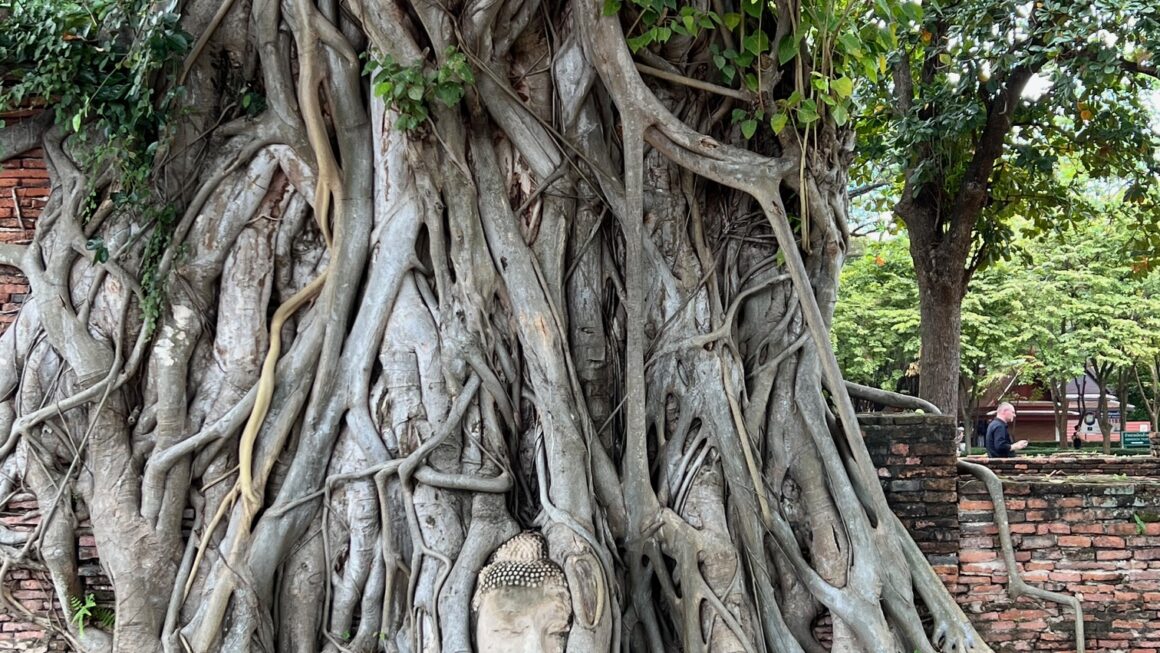 ホテルにチェックインして菩提樹の根の中に埋まった仏像の頭で有名なワット・マハータートに行く。女性タクシードライバーは日本が大好きで毎年日本旅行をしているそうで、スマホの写真を見せながら、「東京、大阪、軽井沢」と話しかけてきた。ワット・マハータートは、頭が無い黒焦げの石像が沢山あって、昔ミャンマー軍の攻撃を受けて滅亡したアユタヤ王朝の残骸が痛々しい。人間はいつになっても戦争を続けていると思うと悲しくて、他の遺跡に行く気分になれなくなった。アユタヤには戦国時代に主君を失った武士や商人が集まった日本人街があったらしく500年以上も昔、何百人もの日本人がアユタヤに居たと思うと不思議な気分になった。